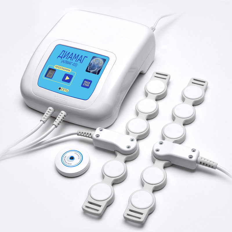 Алмаг-03 классический медицинский аппарат для лечения и профилактики головных болей, депрессивных и тревожных расстройств, нарушений сна. Разработан совместно с ФГБУ Федеральный центр мозга и нейротехнологий и успешно прошел клинические испытания. Магнитное поле аппарата ДИАМАГ способствует также нормализации выработки гормонов адреналина, кортизола, мелатонина и серотонина, тем самым позволяя снижать тревожность, подавленность, перепады настроения и улучшать качество сна.